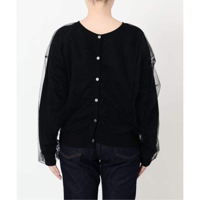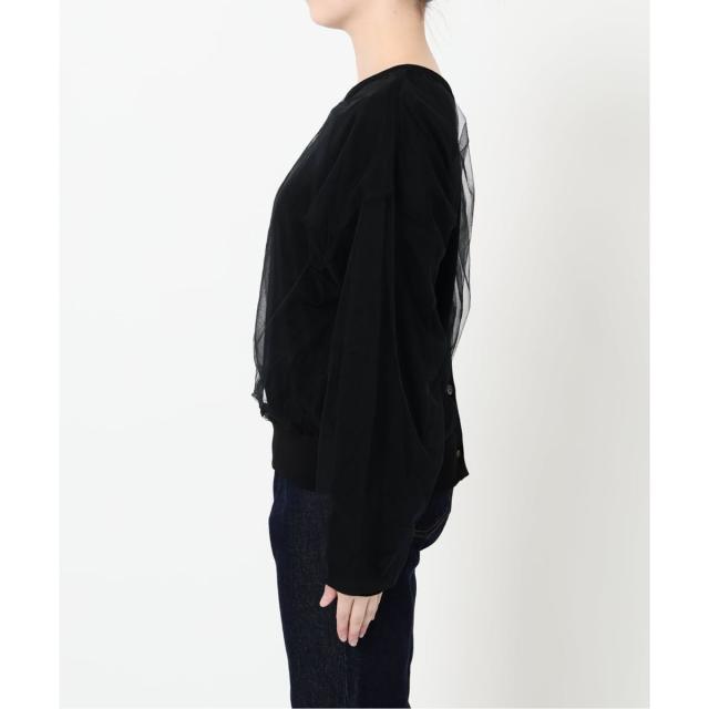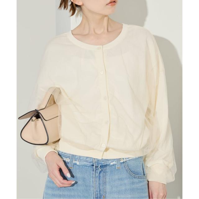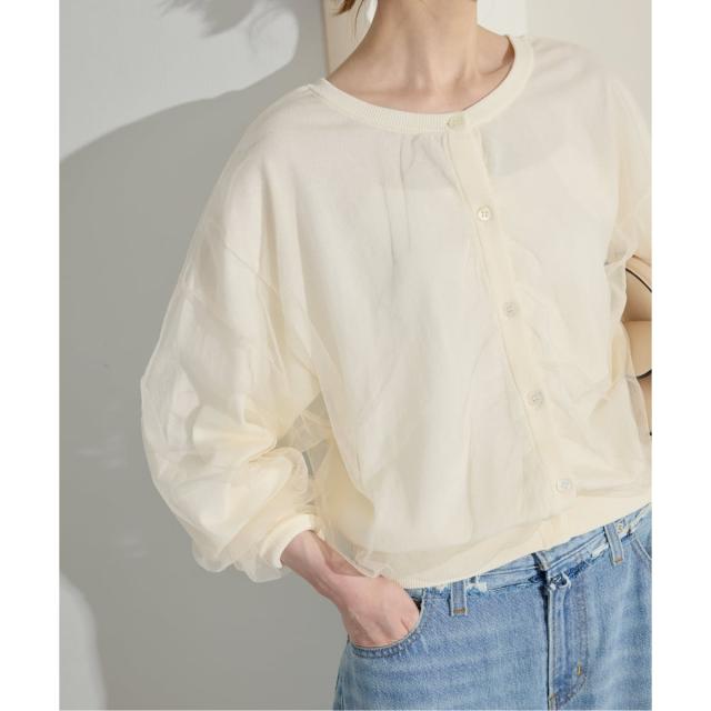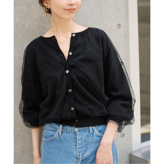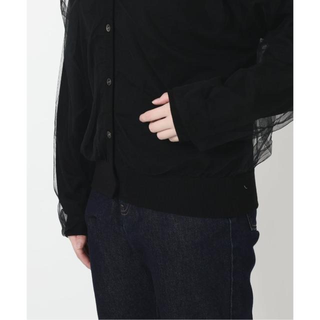 ・前後着られるのが嬉しい!チュール素材がドッキングした鮮度ある見え感のカーディガン!
