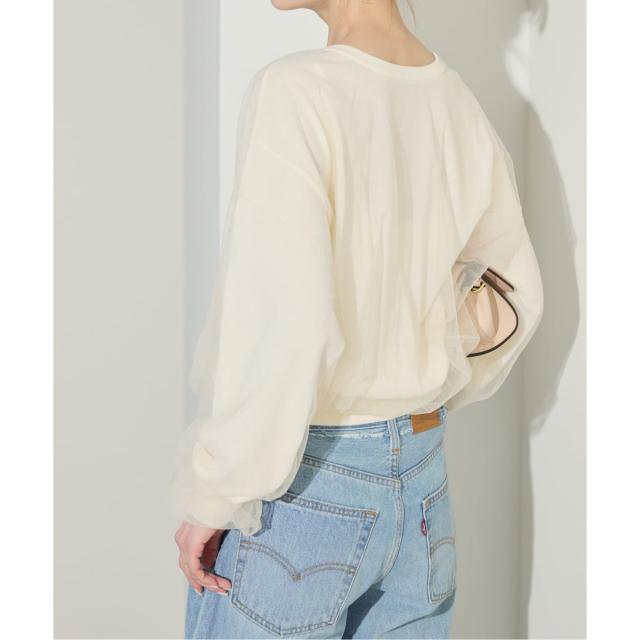 綿混素材ののさらっとしたニットの上にチュールをレイヤードさせました。