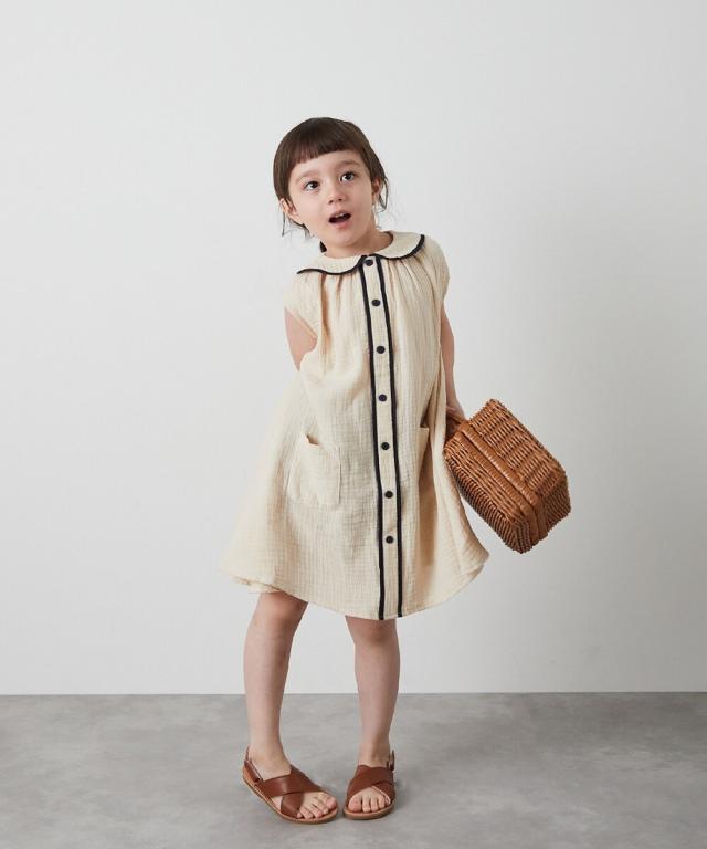 配色のパイピングとボタンがアクセントのダブルガーゼマリンワンピースが新登場?衿ぐりと前立てに施した配色パイピングとボタンの色も合わせ、細部までこだわりました。またダブルガーゼの生地が暑い夏も快適に過ごせます◎・ポケット有り・裏地無し・透け感やや有り※商品画像に関して、撮影時のライティングやご覧になっている表示環境により、実際の商品と色味が異なって見える場合がございます。予めご了承ください。※生産ロットにより、多少の色ブレがございます。商品によって色差が出る場合がございますのでご注意ください。