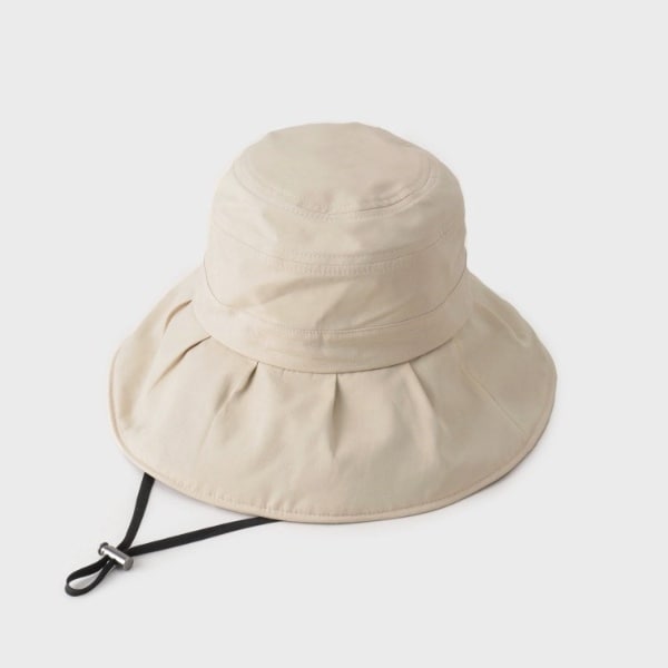ギャザーが入ったデザインは上品な印象、つばも広めなので日よけ対策にも使用可能です。