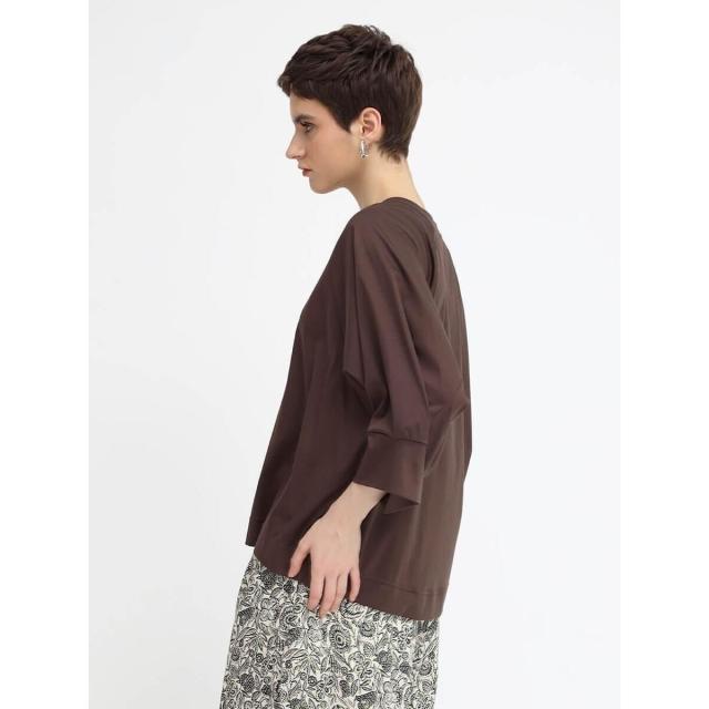 アームホールが広くポンチョのようなシルエットが女性らしい7分丈トップス。シンプルなカットソー素材ながら設計されたあしらいを施し、こなれ感ありながら大人カジュアルスタイルをお届け。どんなボトムスにも合う幅広いコーデに活躍してくれる逸品です。