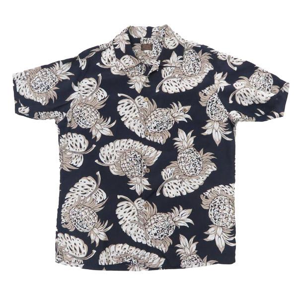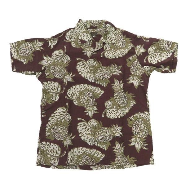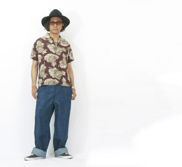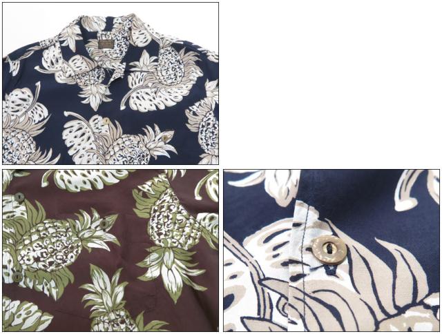 1950年ヴィンテージアロハシャツに実在した柄をリデザインしたパインリーフ柄。