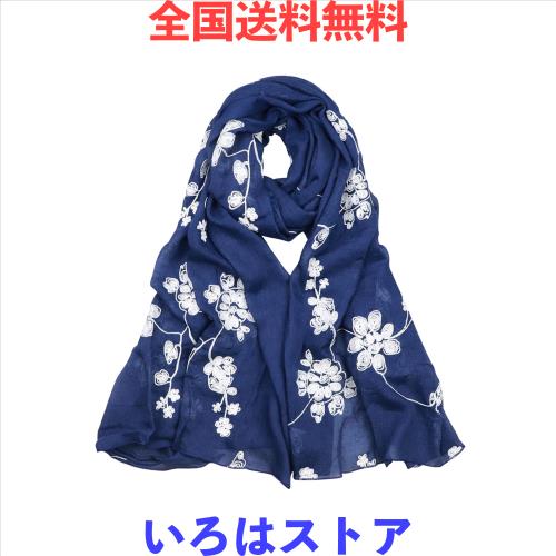 材質:コットンとポリエステル サイズ:幅90cm×縦180cm 重量:0.14kg 色:ネイビー(刺繍花柄)