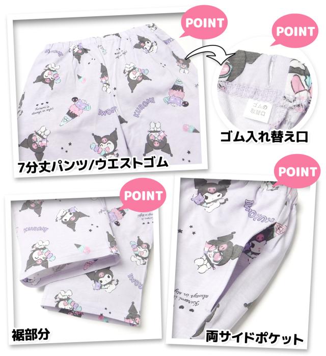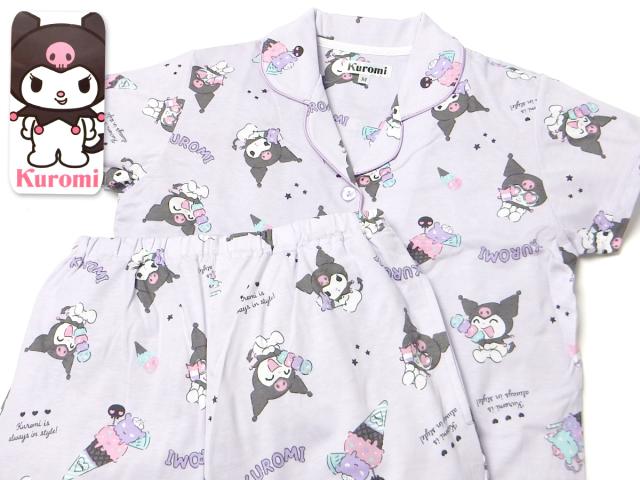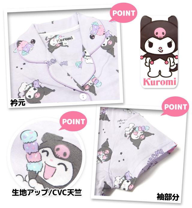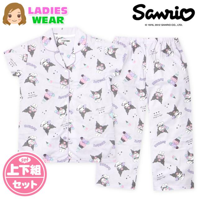 【送料無料】婦人 レディース CVC天竺 半袖 パジャマ 前開き 上下組 Sanrio サンリオ クロミ 7分丈パンツ 総柄プリント M L yg-2884c-pp【メール便対応】