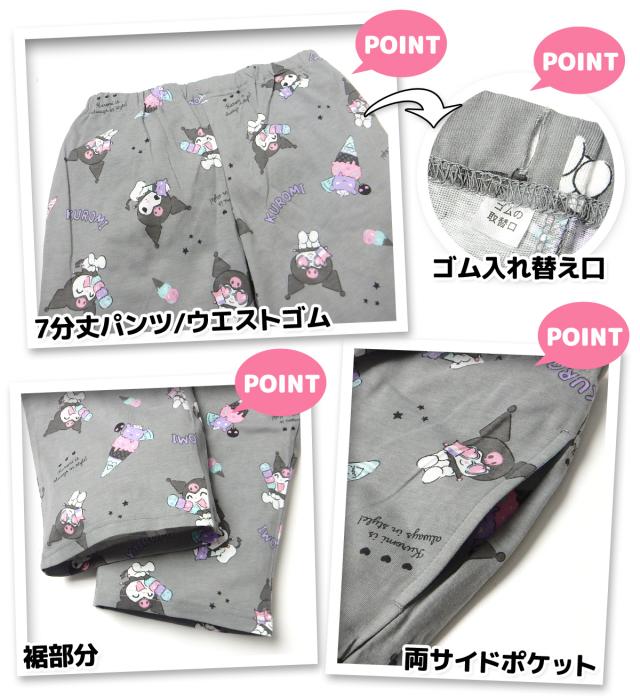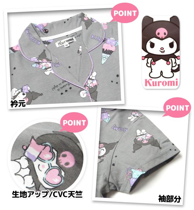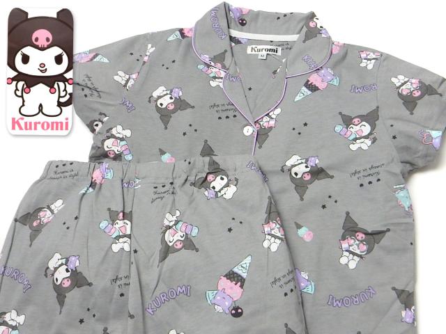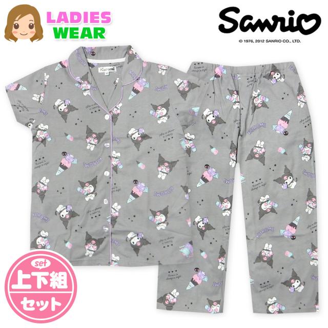 【送料無料】婦人 レディース CVC天竺 半袖 パジャマ 前開き 上下組 Sanrio サンリオ クロミ 7分丈パンツ 総柄プリント M L yg-2884d-gy【メール便対応】