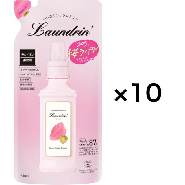 【まとめ買い10個セット】ランドリン 柔軟剤 サクラチェリーブロッサムの香り 2025 詰め替え 480ml 広島倉庫