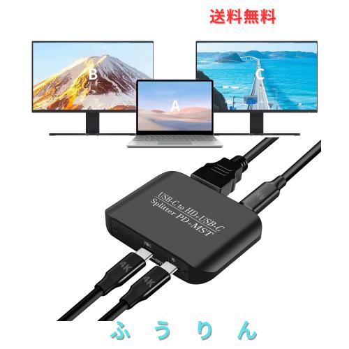USB Cスプリッター 4K 60Hz Type C から デュアル モニター MST SST 拡張/ミラーモードィスプレイアダプ Mac-Book Pro/Air、DELL XPS 13/15、i-Mac、i-Pad Proその他USB-C機器対応