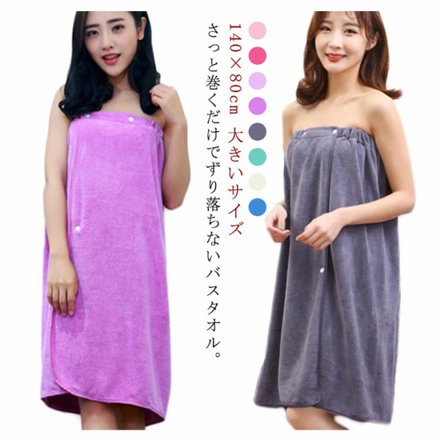 ずり落ちない バスタオル ラップタオル 大判 140×80cm 巻きタオル ゴム チューブトップ 着れる バスローブ ボタン付き 巻くバスタオル お風呂上り 大人 子供 吸水 速乾 スカートタオル エステ 入浴お風呂上り ビーチ プール