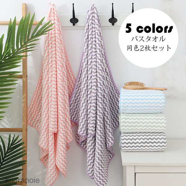バスタオル 同色2枚セット サンゴネル バスタオル ゼント 柔らかい しっかり 吸水 極上肌触り 水波模様柄 おしゃれ かわいい プレゼント 贈り物 70cm*140cm 5色