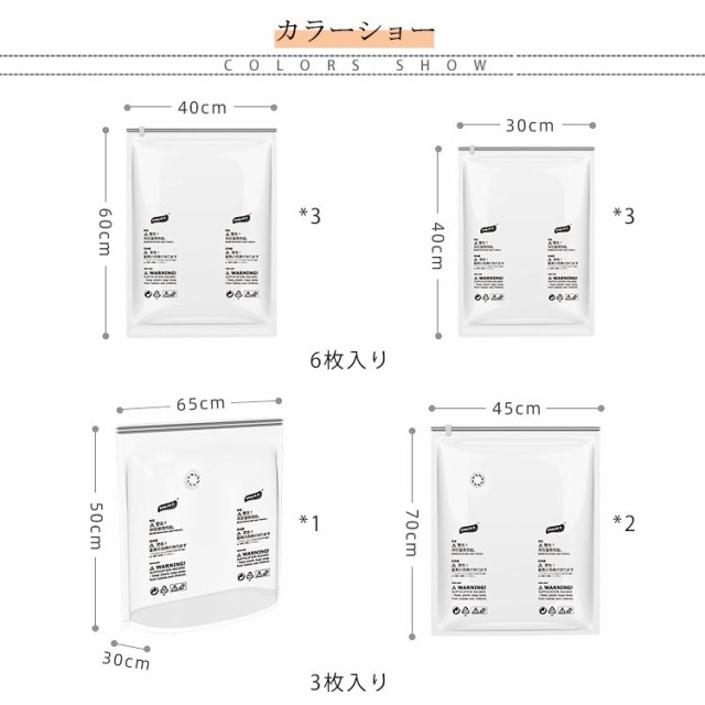 圧縮袋 手巻き 旅行 出張 ポンプ不要 衣収納 掃除機不要 衣替え 手巻き圧縮袋 真空パック袋 防水 防塵 省スペース 6枚入り 3枚入り