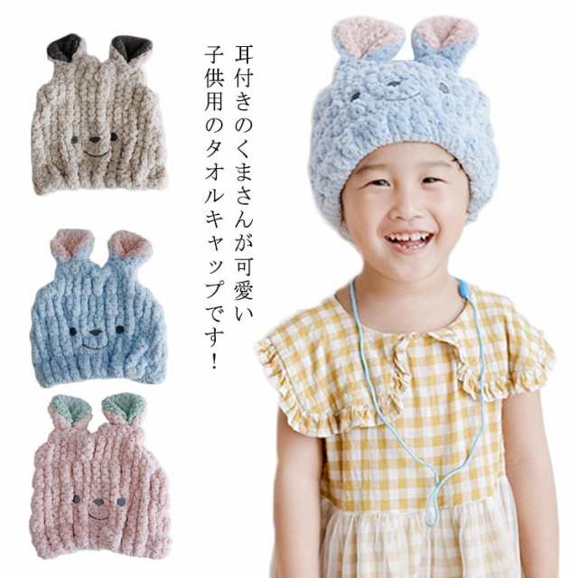 送料無料 タオルキャップ 耳付き ドライキャップ もこもこ モコモコ キッズ 女の子 子供用 プール 水泳 スイミング ヘアキャップ 男の子 マイクロファイバー タオル お風呂 吸収 髪 タオル 海 ヘアタオル 海水浴