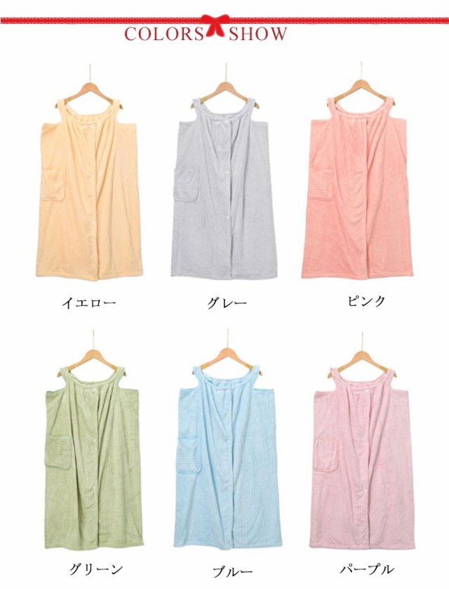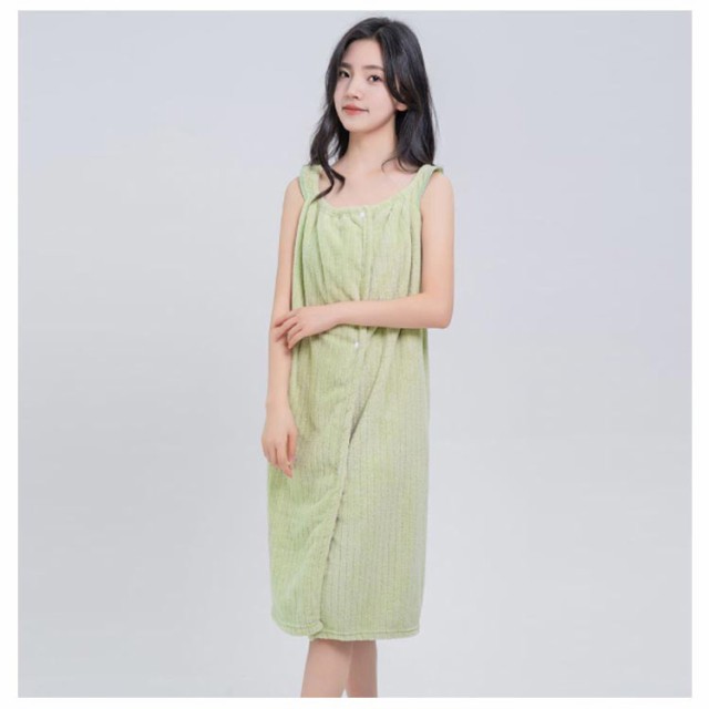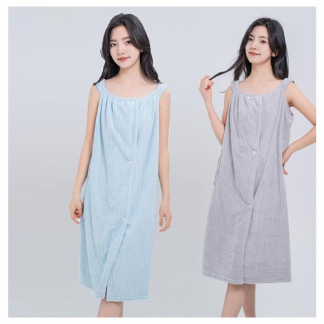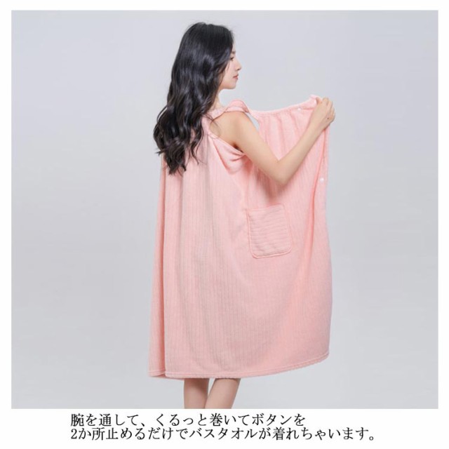 | 普段使いはもちろん、 レジャーシーンやジムなど幅広いシーンで活躍してくれる便利アイテム◎ ワンピースの様に着れる、バスタオル。 腕を通して、くるっと巻いてボタンを 2か所止めるだけでバスタオルが着れちゃいます。 髪を乾かす時・夏のお風呂上がり・夏のレジャー 等々、 普通のバスタオルでは少し不便な場面でのストレスを解消! | |