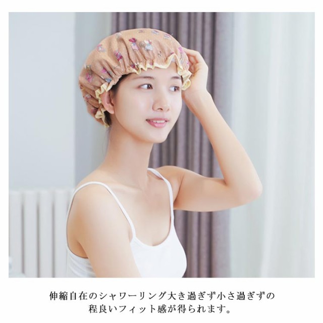 | 二重防水シャワーキャップ♪撥水加工で髪の毛を水からしっかりガード。 防水浴帽 裏地も耐水加工されておりヘアトリートメントやヘアパックの蒸らしにもぴったり。 防水 シャーリング部分は程よい締め付き感で頭の丸みに沿ってフィットするため、長い髪を入れても下に垂れ下がってきません。 ?合 シャワー・洗顔・入浴時に、髪を湯気や水しぶきから守ります。居家好物 | |