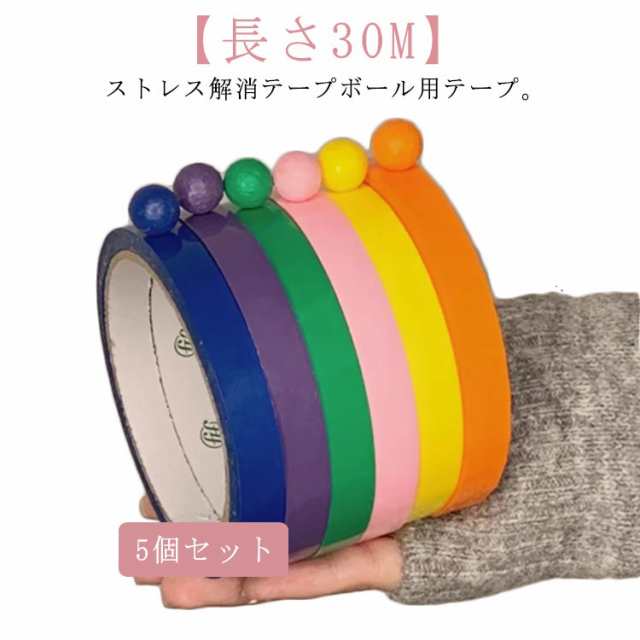 【送料無料】テープボール 長さ30M 5個セット テープボール用テープ 粘着ボールテープ カラフル 子供 大人 ストレス解消 玩具 暇つぶし DIY 減圧おもちゃ 癒しグッズ リラックス ストレス発散 おもちゃ