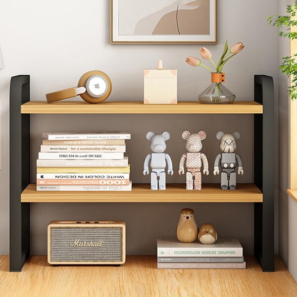 | 商品名 | 卓上 本棚 ラック デスク収納 棚板高さ調節可 2段 机上台 キッチン収納 調味料ラック ノート パソコン台 卓上 30cm (ウッド色棚板+黒色フレーム) |