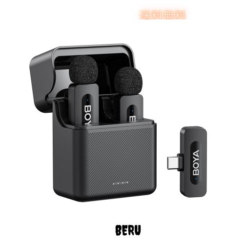 Boya V30ワイヤレスピンマイク iPhone 16/15&Androidの場合、伝送距離100m、オールインワン、ノイズ削減、36時間連続使用と充電ケースビ