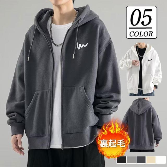パーカー メンズ フード付き 長袖 無地 トップス ジップアップ プルオーバー 裏起毛 裏ボア 2type シンプル カジュアル ゆったり 通勤 通学 暖か 春秋 秋冬