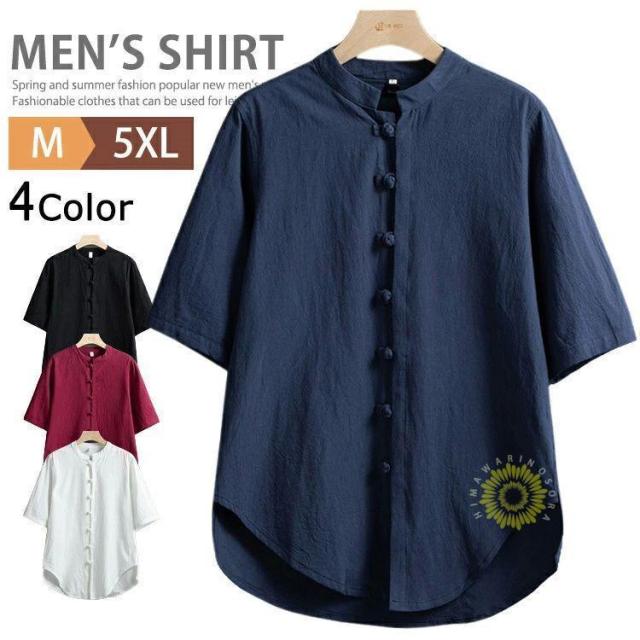 シャツ チャイナシャツ メンズ 半袖シャツ チャイナ服 普段着 カジュアルシャツ スタンドカラー カンフーシャツ チャイナボタン チャイナ風 男性用 夏物 春夏 薄
