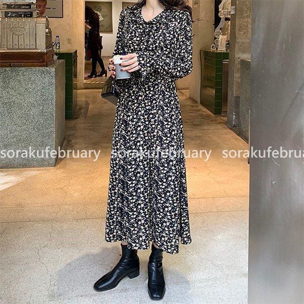 ワンピース 秋物 レディース 40代 きれいめ 秋 ロングワンピース 春新作 長袖 花柄ワンピース シフォン フレアスカート オシャレ 通勤 結婚式 お出かけ 大人