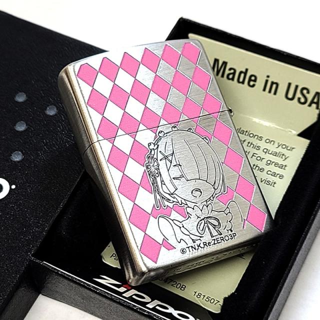 ZIPPO アニメ Re:ゼロから始める異世界生活 ラム ジッポ ライター かわいい リゼロ 両面加工 銀古美 かっこいい キャラクター 彫刻 シルバー ピンク おしゃれ メンズ ギフト 銀 可愛い