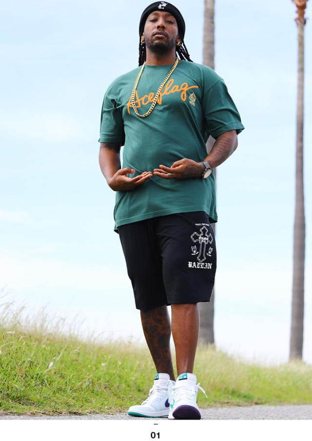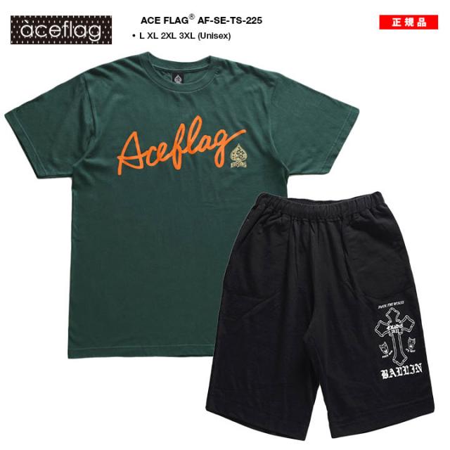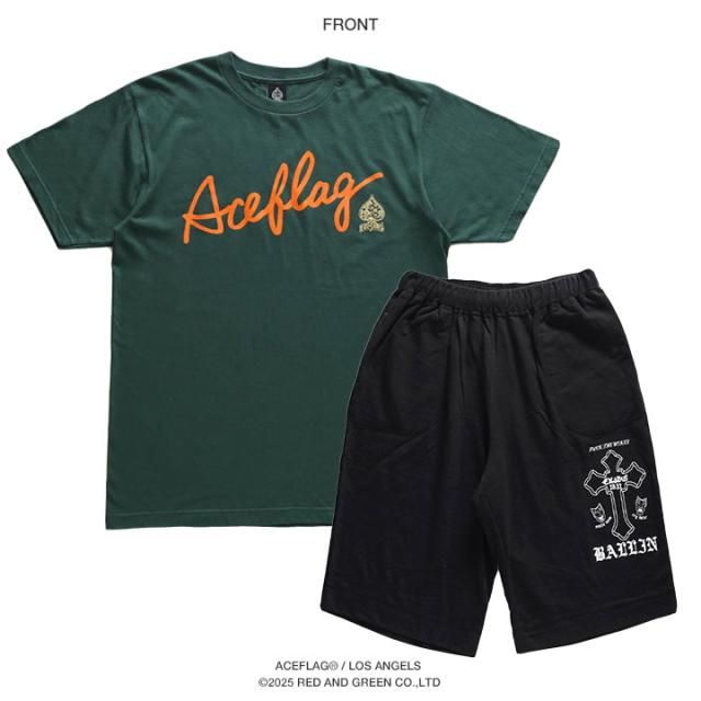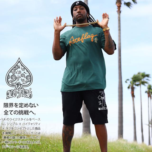 ACE FLAG 上下セット 半袖 ブランド Tシャツ ハーフパンツ メンズ 春夏用 緑 大きいサイズ エースフラッグ セットアップ スペード スペードロゴ ペイズリー柄 バンダナ柄 ビッグシルエット b系 ヒップホップ ファッション ダンス ストリート系 2025 新作 AF-SE-TS-225