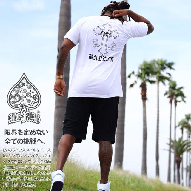 ACE FLAG 上下セット 半袖 ブランド Tシャツ ハーフパンツ メンズ 春夏用 白 黒 大きいサイズ エースフラッグ セットアップ THUG LIFE サグライフ ビッグシルエット b系 ヒップホップ ファッション ダンス ストリート系 ハイ 2025 新作 AF-SE-TS-227