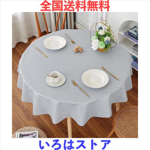 AooHome テーブルクロス 円形 グレー PVC 撥水 おしゃれ テーブルカバー 北欧 防水 防油 汚れ防止 円形直径140cm テーブルマット 木目 北