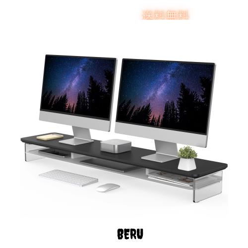 Fenge モニター台 モニタースタンド 卓上 机上台 パソコン台 PC台 机上ラック 108cm横幅 2段 木製天板 アクリル製脚 デスクトップ用 机上