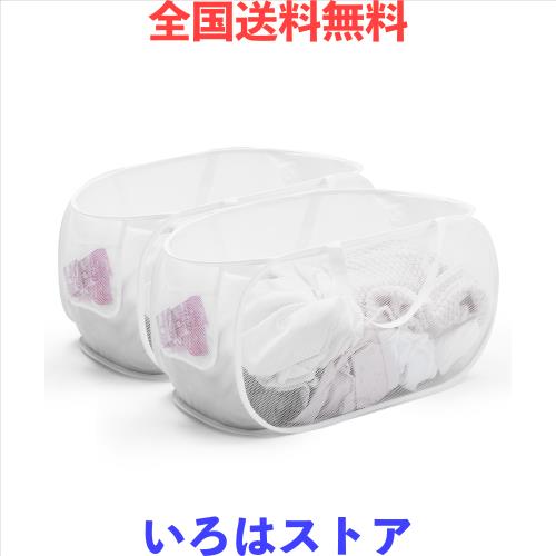 【組み立て不要、幅広く利用でき】誰でも、簡単に利用でき、開ける瞬間でサッと組立完了!ランドリーバッグの表面はメッシュ加工で通気性がある。日差しがあれば、直接に物を干すこともできます!広げた時:長さ64cm×幅さ35cm×高さ35cm/折りたたみ時:縦横20cm。