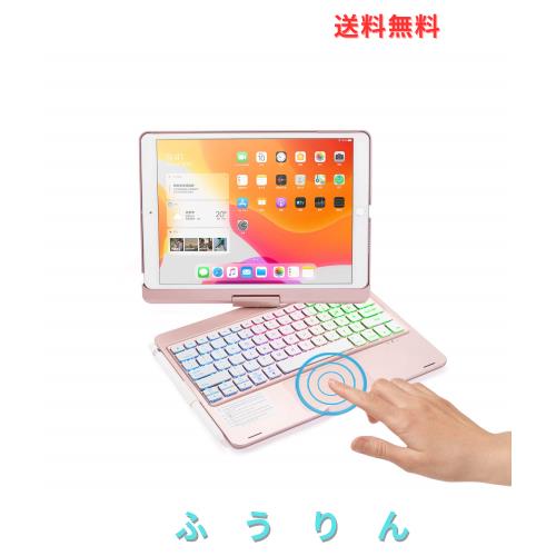 360度回転 iPad9 iPad8 iPad7 iPad Air3 Pro10.5 キーボード タッチパッド搭載 バックライト ケース 一体型 折り畳み iPad 第9/8/7世代 カバー トラックパッド キーボード付き iPad 10.2インチ 10.5インチ アイパッド 9 8 7 キーボードケース (ローズ金)