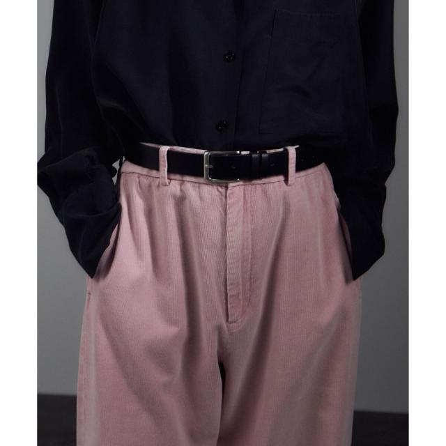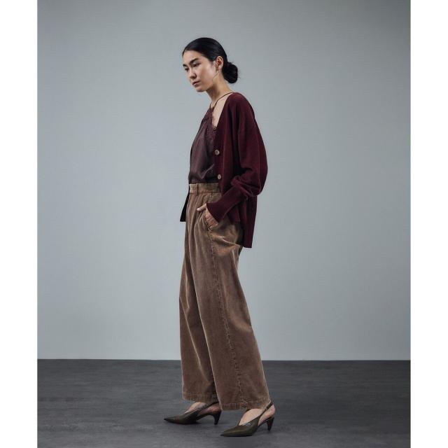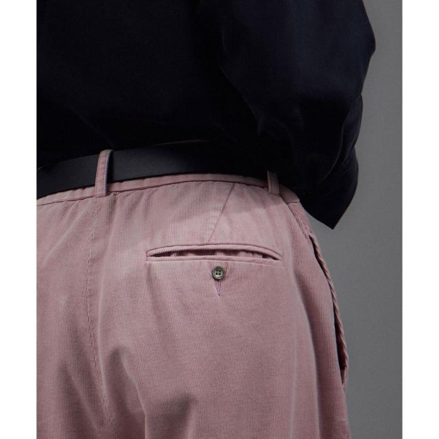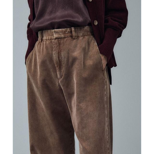 カジュアルな印象のコーデュロイ素材を、あえてスラックスのようなきれいめなデザインに落とし込むことで、