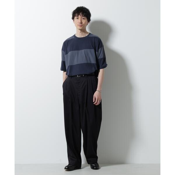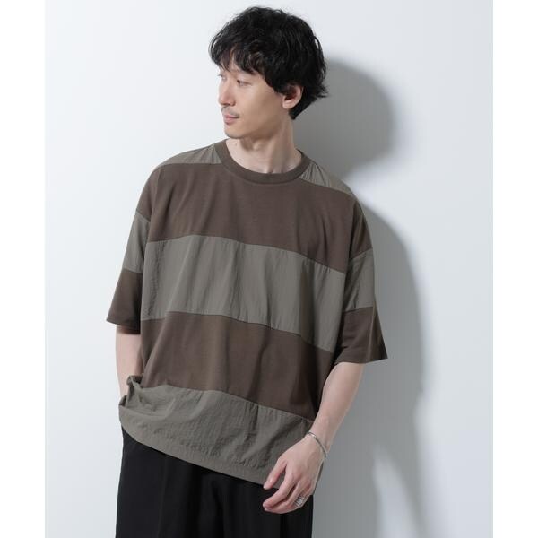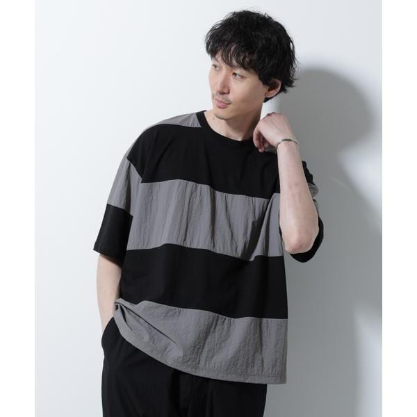 ナノユニバース(NANO universe)/リラックス異素材ボーダーTシャツ 半袖