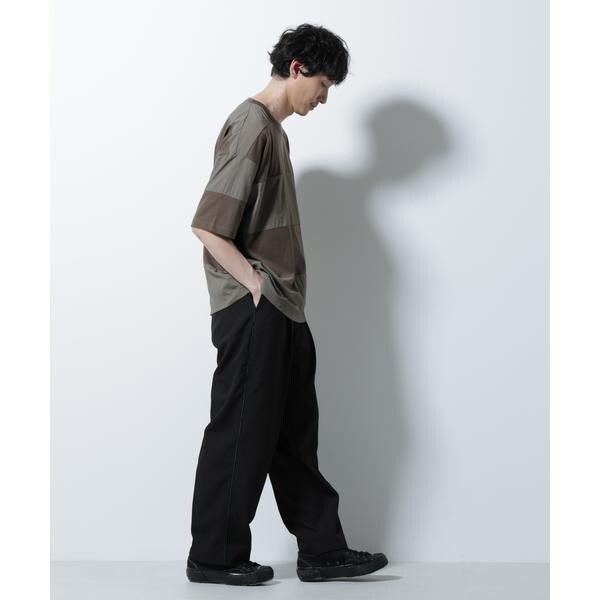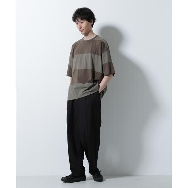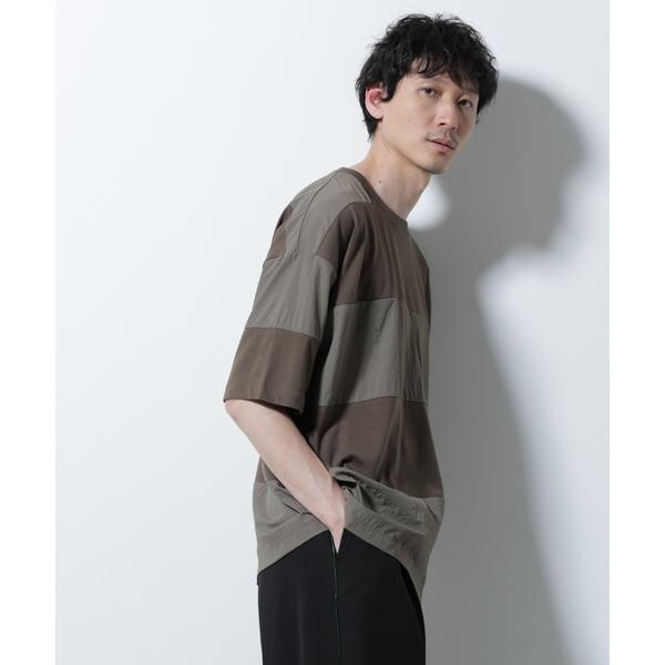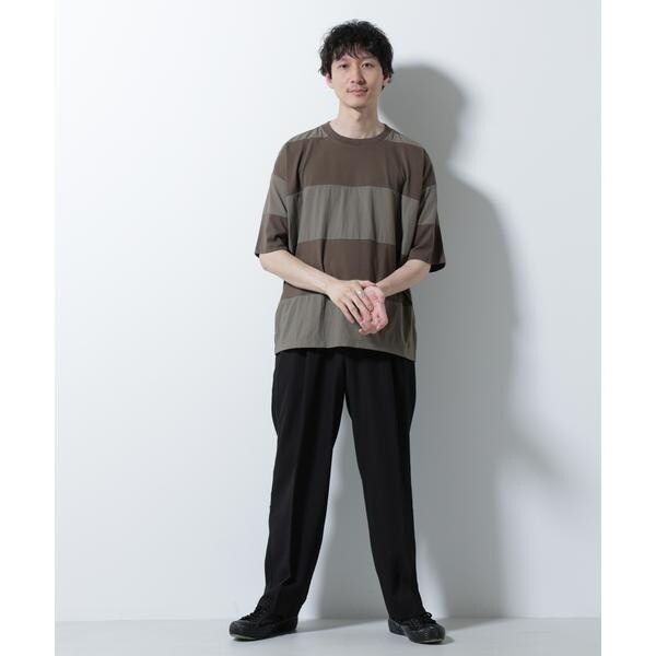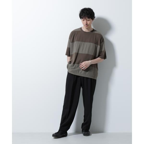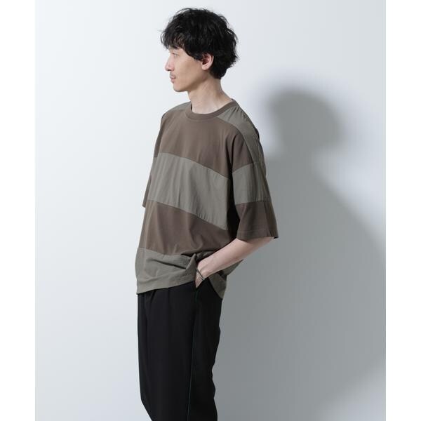 布帛とカットソーを組み合わせたボーダーTシャツ。シックな配色でまとめたアーバンライクな1着です。
