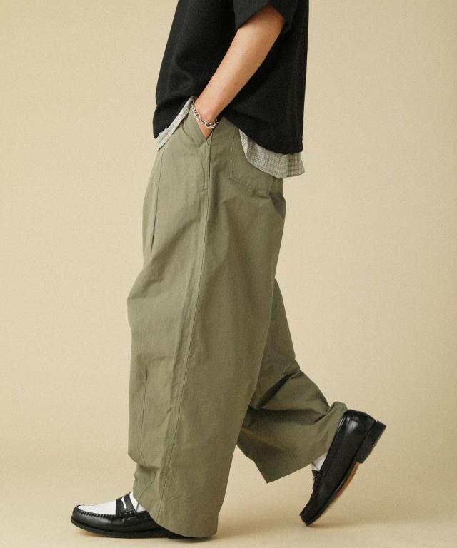 コットンナイロンギャバUS ARMYファティーグワイドイージーバルーンパンツ セットアップ対応