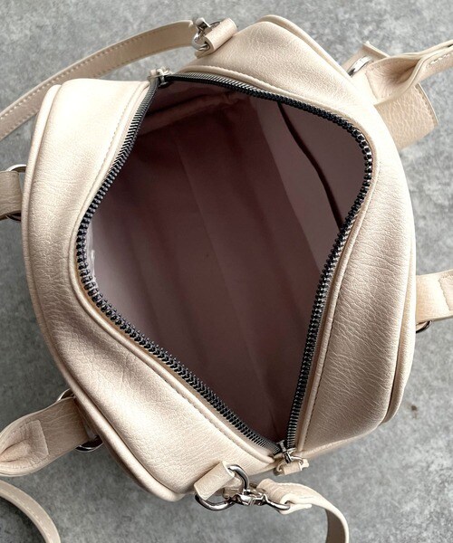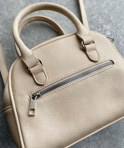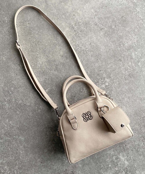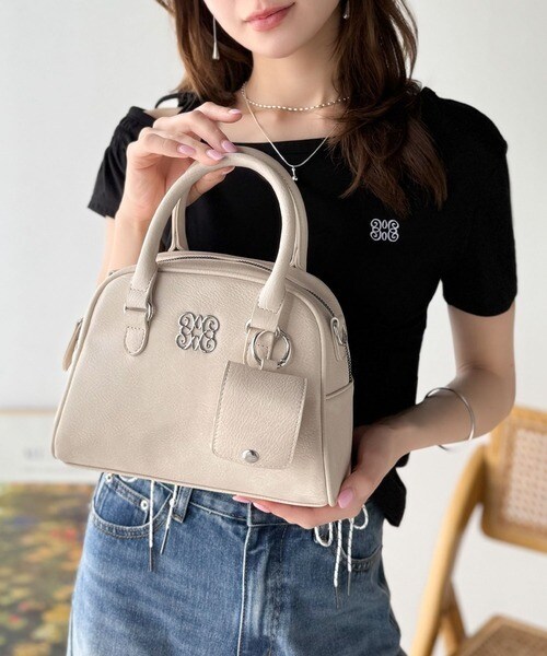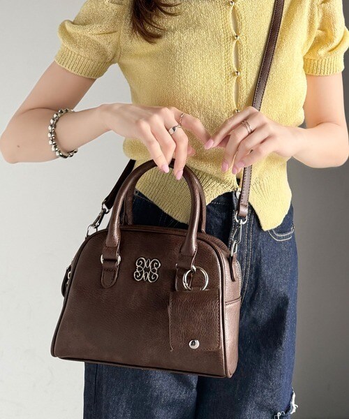 【mily bilet】どんなスタイルにもちょうどいい♪ロゴプレート使いラウンドミニボストンバッグ