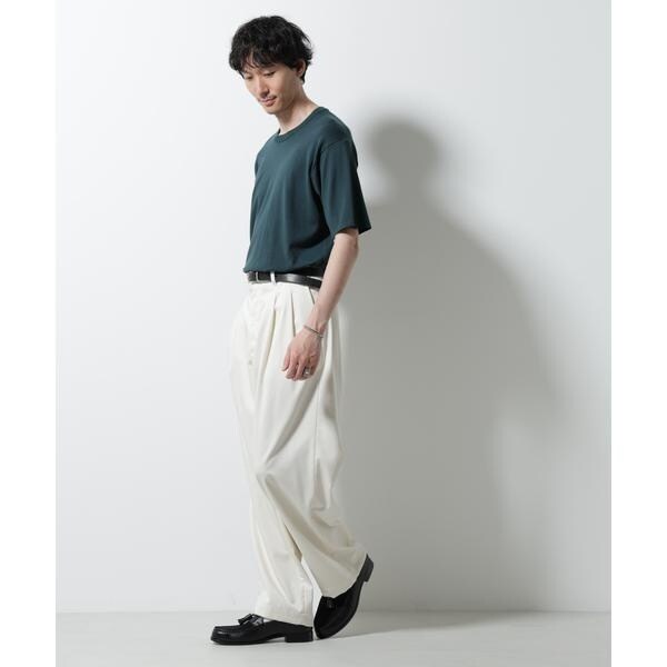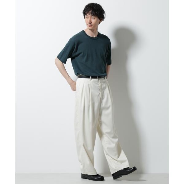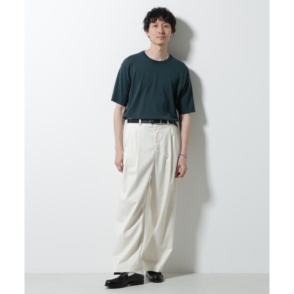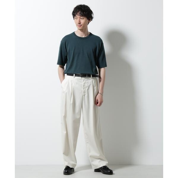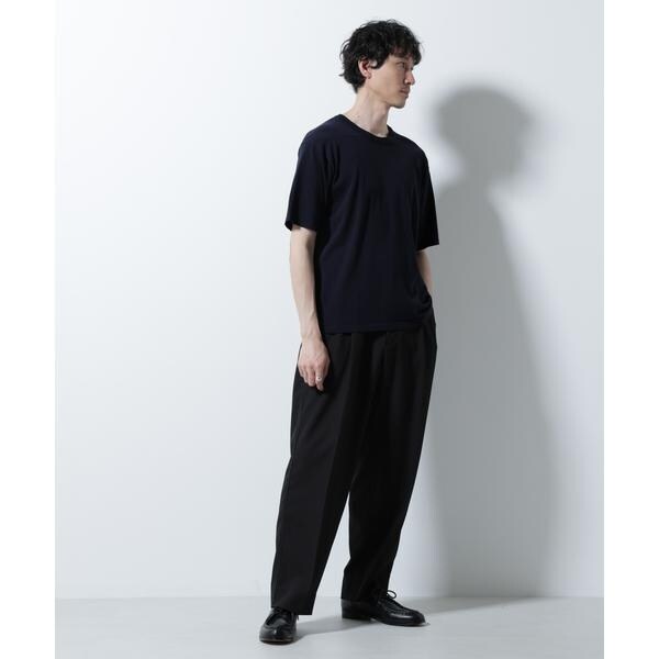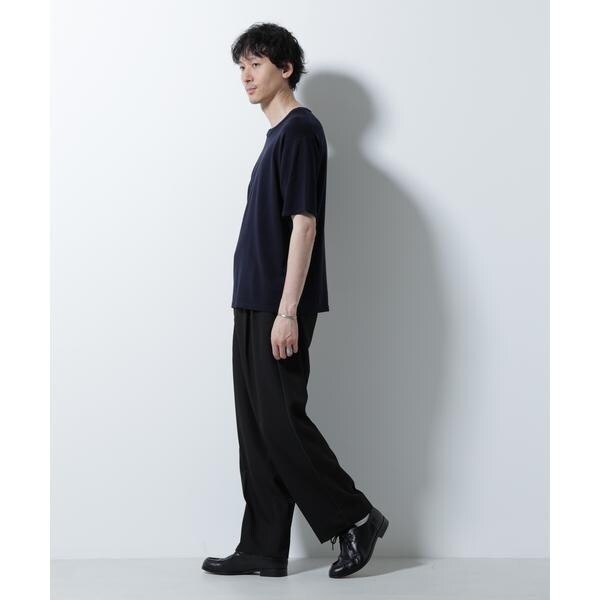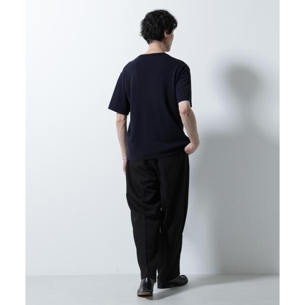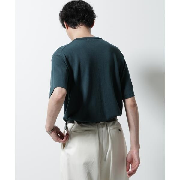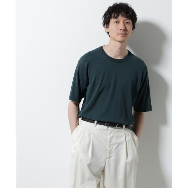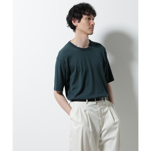 地肌に着ても心地の良いニットTシャツ。シルク混の微光沢が高級感のある印象で、きれいめなコーディネートにマッチする一枚です。