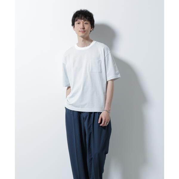 毛羽を抑えた高級感漂うオリジナルのボーダーTシャツ。シルケット加工を施した素地はカジュアルになりすぎないので、きれいめなスタイリングにマッチする一枚です。