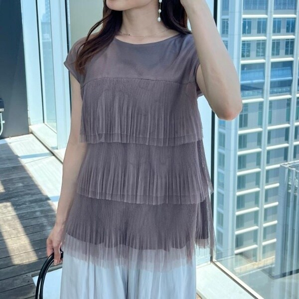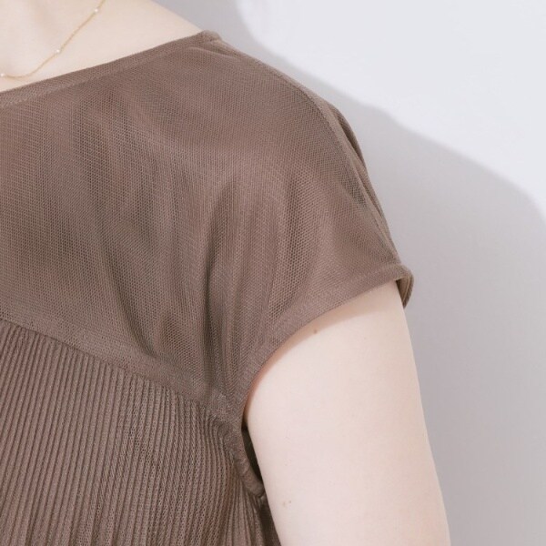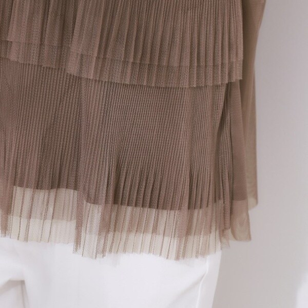 ふんわりとしたチュール素材をプリーツ加工したデザインチュニック