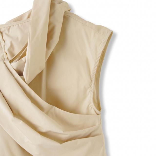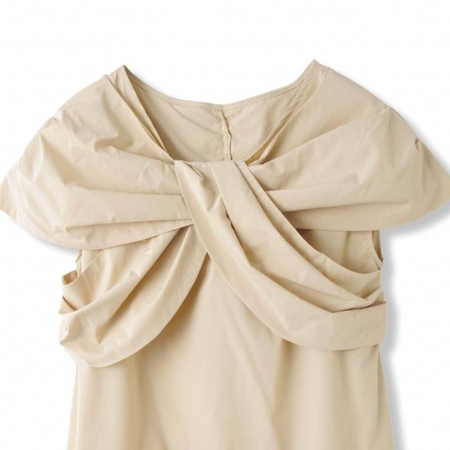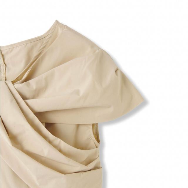 ケープを纏ったような印象はハリ感のあるテキスタイルを使用しているからこその立体的なデザインに。