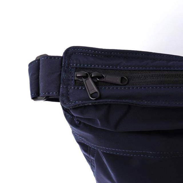 メインファスナーとフロントポケットのファスナーはダブルファスナー仕様で、左右どちらの肩に斜め掛けしてもストレスなくご使用頂けます。