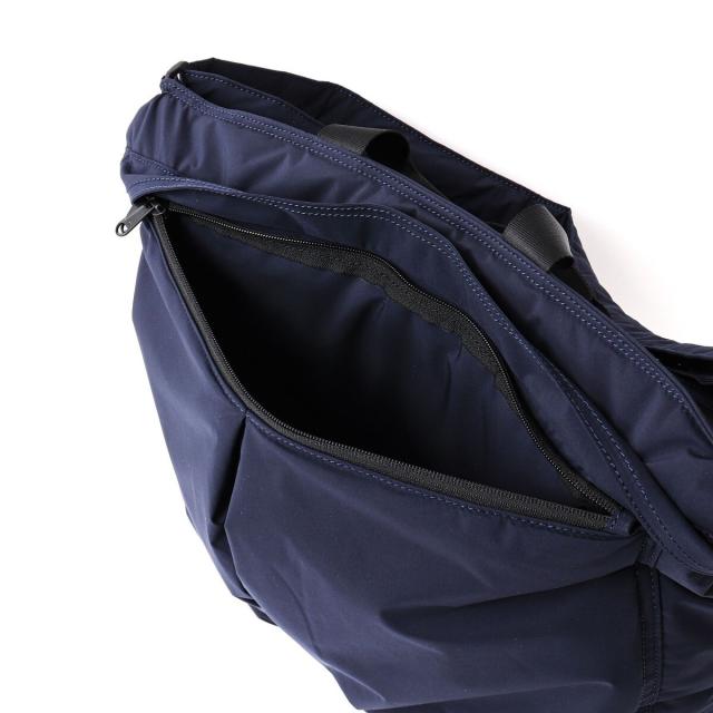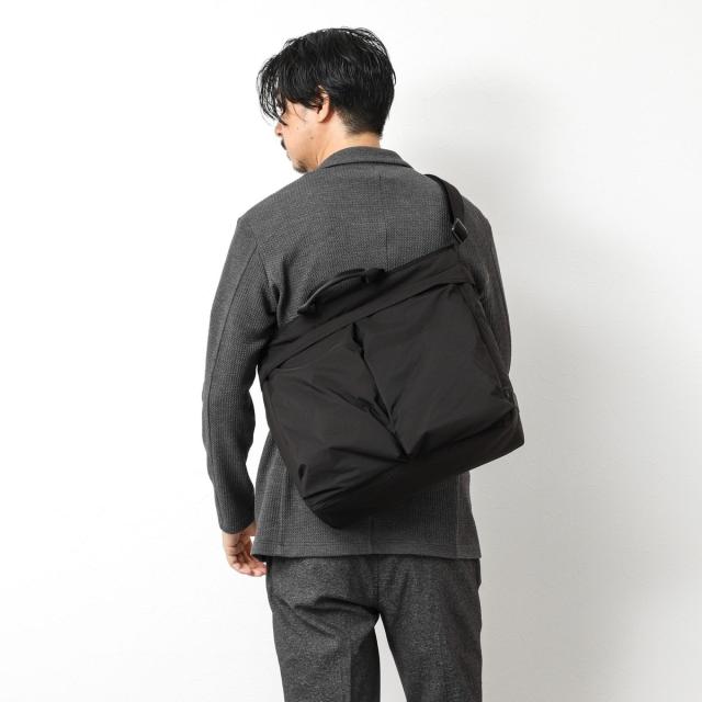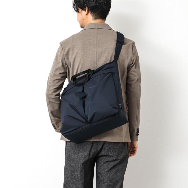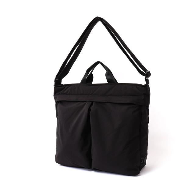 ヘルメットバッグをイメージしたフェイスがデザインポイントの2WAYショルダーバッグで、軽量素材にボンディング加工を施し見た目以上の軽さが特徴です。