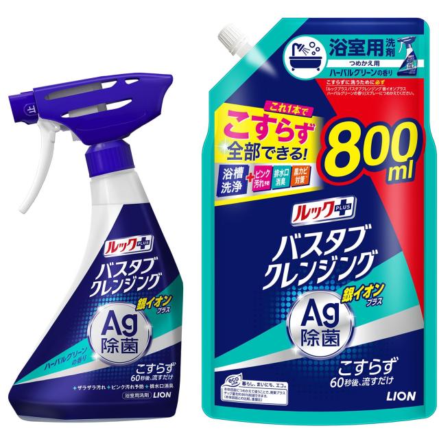 商品紹介 【浴そうをこすらず洗えるバスタブクレンジングに銀イオンを配合。除菌とピンク汚れ予防もこすらずにできる浴室用洗剤】 ●ブルーのミストを浴そう全体にシューーーッとかけて60秒後に流すだけで、こすらず洗える ●1プッシュ1m出るバスタブクレンジングに銀イオン配合だから、広範囲をこすらずに除菌できる ●床や排水口などピンク汚れがつきやすいところに、シューーーッとかけて60秒後に流すだけで、ピンク汚れの原因微生物を除去。こすらずにピンク汚れの発生を予防できる ●ウイルス除去・排水口消臭も ●すっきりとしたハーバルグリーンの香り
