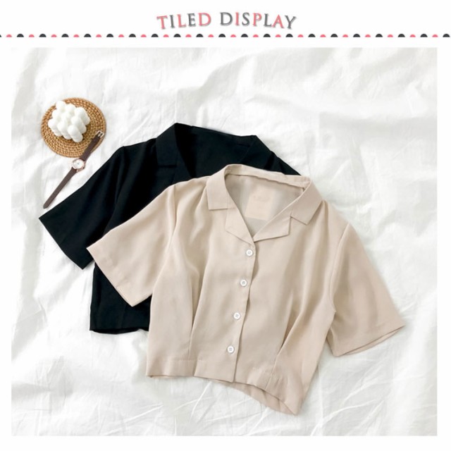 ショート丈 シャツ ブラウス 半袖 オープンカラー へそ出し レディース 送料無料 タック 春夏 シフォン トップス おしゃれ レトロ 韓国ファッション 通勤 お出かけ