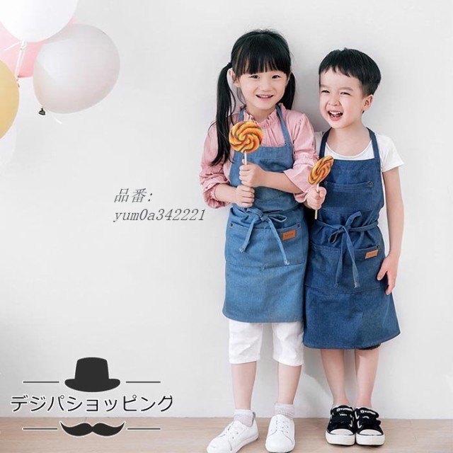 キッズ エプロン 子供用 男女兼用 ワークエプロン エプロン デニム 書道 料理 全店2点 小学校 前掛け 絵画 給食 インディゴ 親子お揃い 店員 おしゃれ