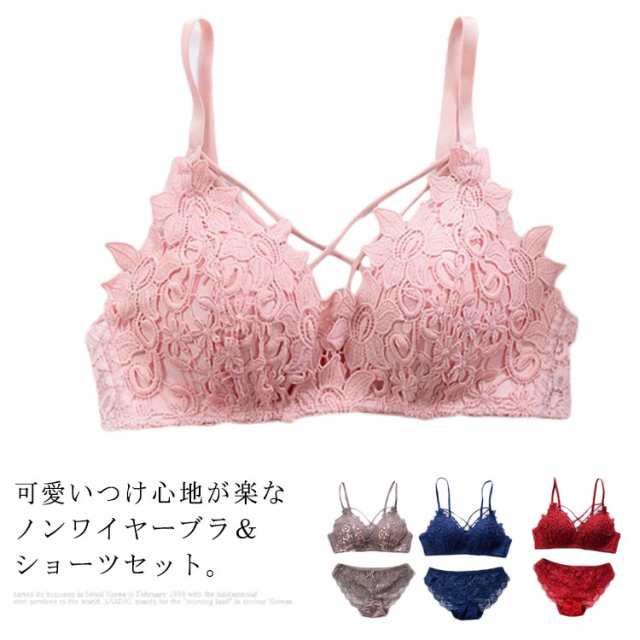 送料無料 ブラジャー ショーツ セット レディース ノンワイヤー ブラジャー 3/4カップ 三角ブラ 上下セット 総レース 下着 ショーツ ブラセット バストアップ セクシー アンダーウェア レース 花柄 谷間 脇肉 美背 薄手 少女 可愛い