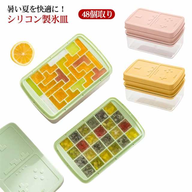 製氷皿 蓋付き 大容量 製氷ケース シリコン ブロックトレー 便利 48個取り かわいい アイストレー 冷凍保存小分け容器 ベビー食器 離乳食 保存容器 ウィスキーロック ハイボール 晩酌 家飲み キッチン雑貨 使いやすい テトリス 道具 おもしろ ギフト 送料無料