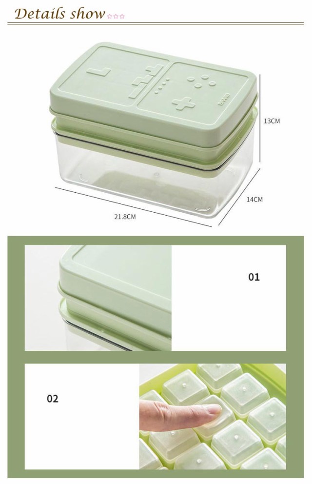| 暑い夏を快適に!シリコン製氷皿 柔らかい、変形に強いシリコン素材を採用。ワンプッシュで簡単に氷を取り出せます。 密閉フタ付きで衛生的。匂い移りやほこりを防ぎます。 かわいいテトリスデザイン、製氷の楽しさをアップします! 2段タイプは重ねられる設計なので、製氷時に場所を取らず、冷凍庫内のスペースを有効に活用できます。 ドリンク、アイスバケツ、フルーツ氷、離乳食やスープの冷凍ストークなど、アイデア次第で使い方いろいろ♪ | |