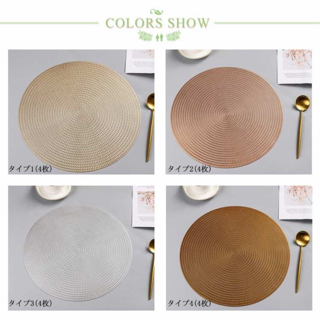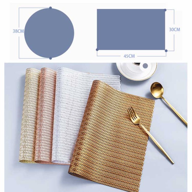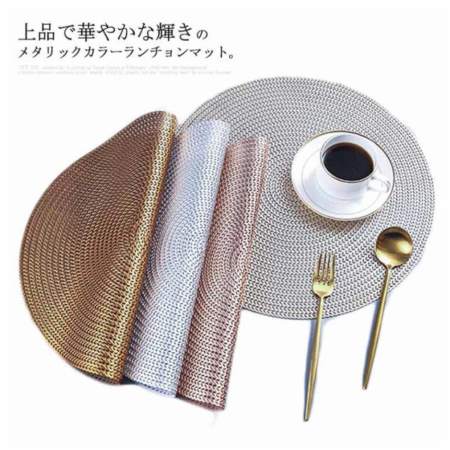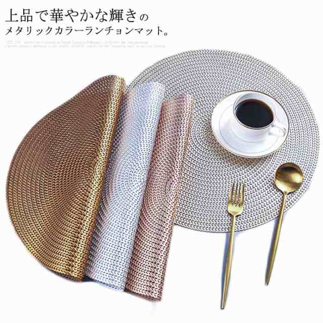 ランチョンマット 4枚セット ディスプレイマット おしゃれ メタリック調 キッチン用品 キッチンファブリック マット プレースマット 北欧風 シルバー ゴールド ラウンド型 インテリア 高級感 かわいい ファッション おしゃれ