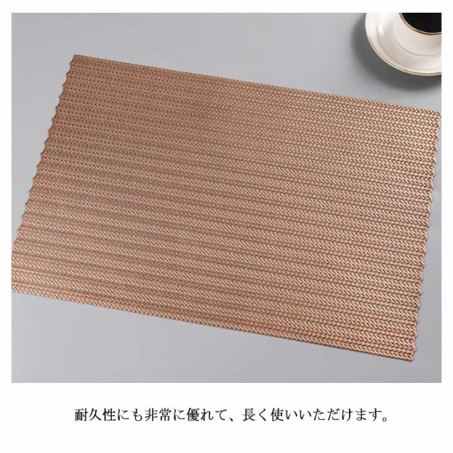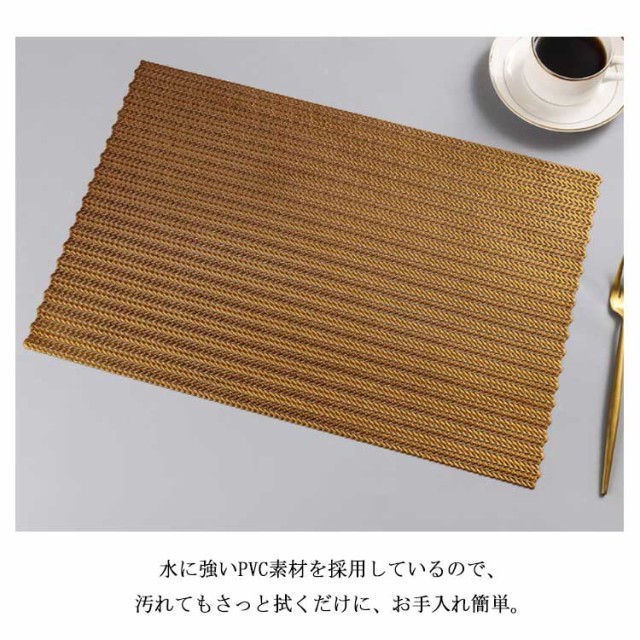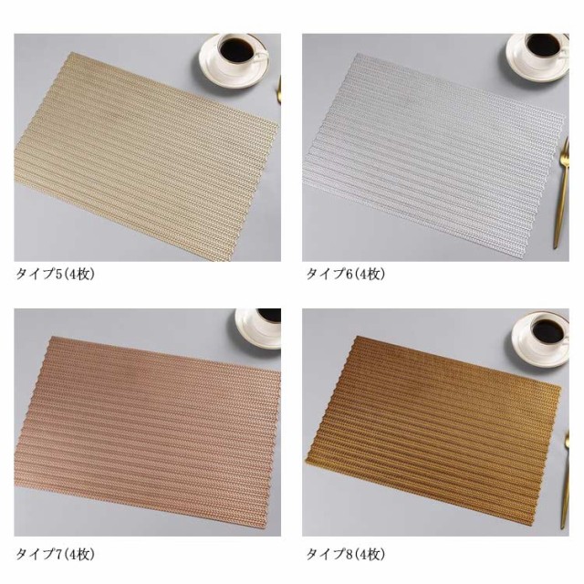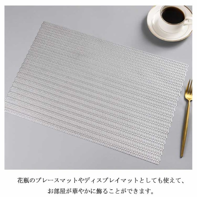 | 上品で華やかな輝きのメタリックカラーランチョンマット。 4枚セットでお手頃価格で買い得! 水に強いPVC素材を採用しているので、汚れてもさっと拭くだけに、お手入れ簡単。 耐久性にも非常に優れて、長く使いいただけます。 花瓶のプレースマットやディスプレイマットとしても使えて、お部屋が華やかに飾ることができます。 | |