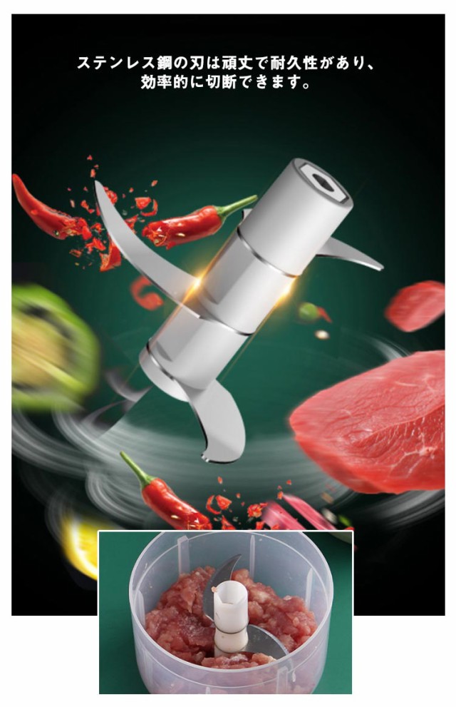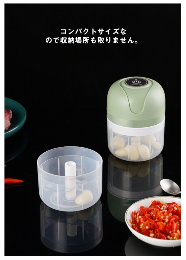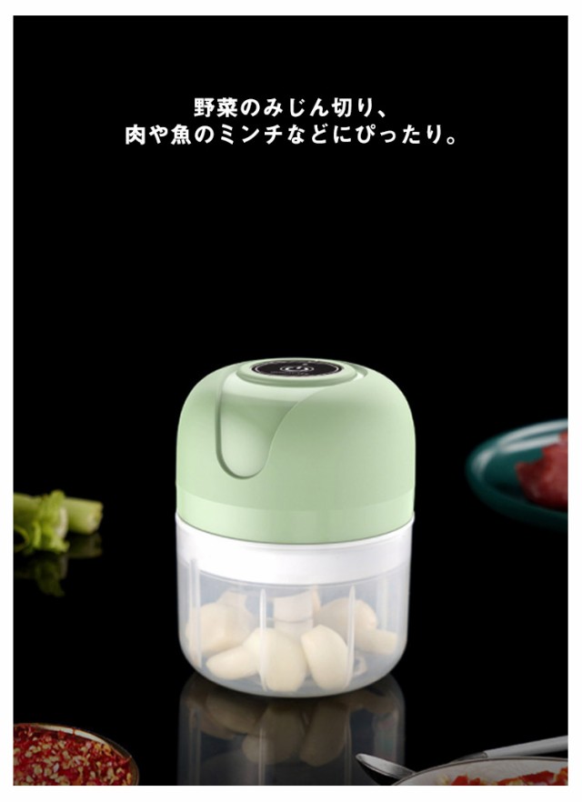 みじん切り器 電動 ニンニクつぶし器 USB充電式 ブレンダー フードチョッパー 離乳食 ミキサー ミンチ カッター 下ごしらえ フードプロセッサー コンパクト 簡単 簡単 みじん切り 便利グッズ 介護食 時短 200ml
